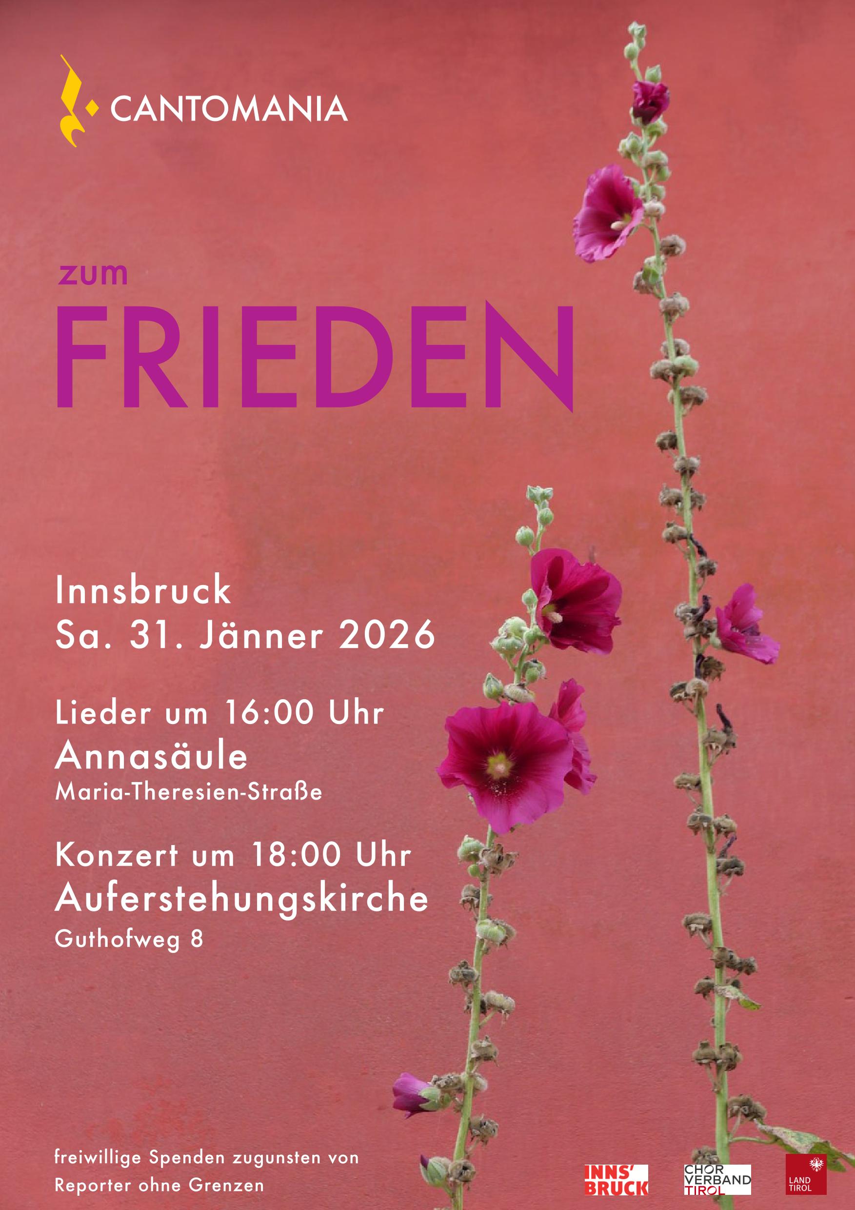 Das Konzert findet auch am Samstag, 24.5.25 im Mehrzwecksaal im Olympischen Dorf statt. Karten gibt es beim Ticket-Service, Burggraben 3.